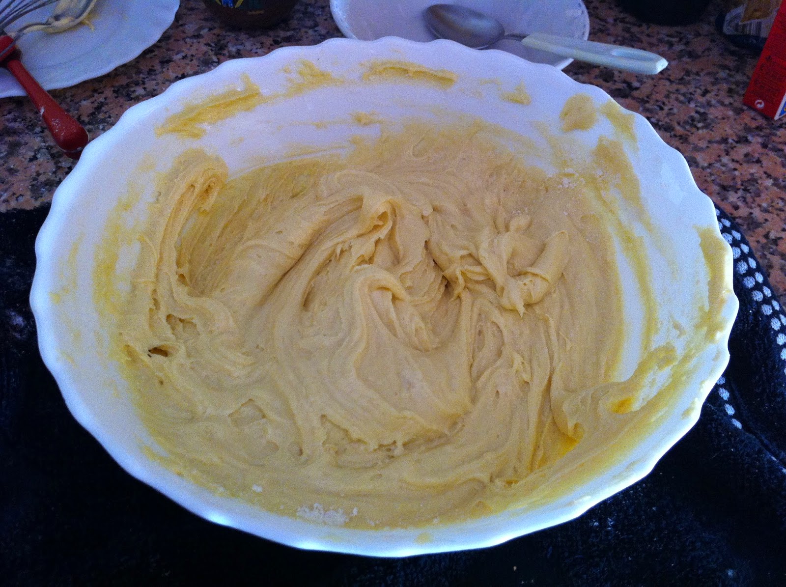 El siguiente ingrediente que utilizaremos serán los huevos. Echaremos los huevos uno por uno. Para que nos sea más fácil trabajarlos, a la vez que echemos un huevo, echar 2 cucharadas de harina también. No echar otro huevo hasta que no esté plenamente integrado el anterior.